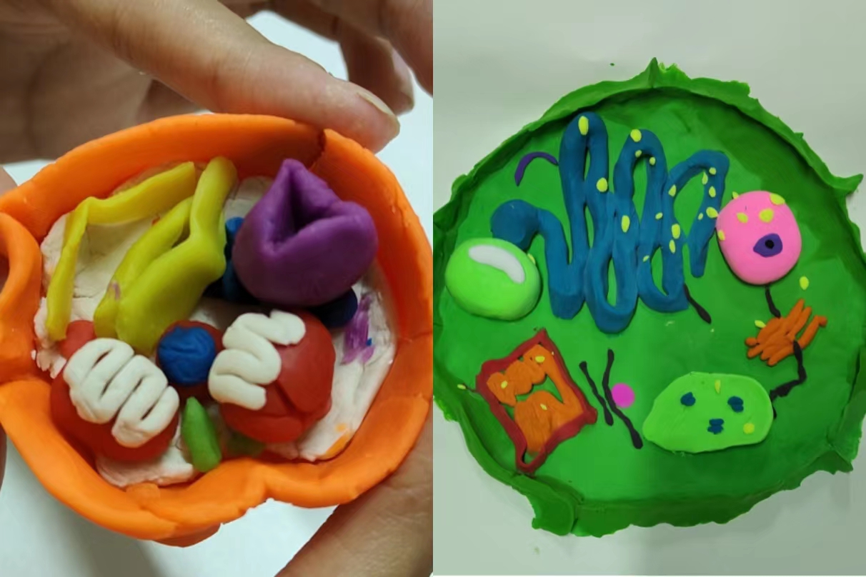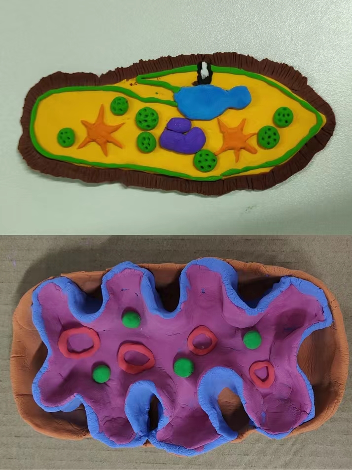 活动中,同学们利用日常生活中常见的原料,如橡皮泥、纸板、泡沫、超轻黏土、铁丝等,充分发挥创意,制作出多种多样的生物模型,直观地呈现了各种微观的生物学结构和抽象的生命活动过程。展评环节中,同学们围绕自己的作品制作选材、呈现内容、作品优点、作品反思等进行了展示,真正做到了理论与实践相结合,切实提高了生物学科综合素养。
