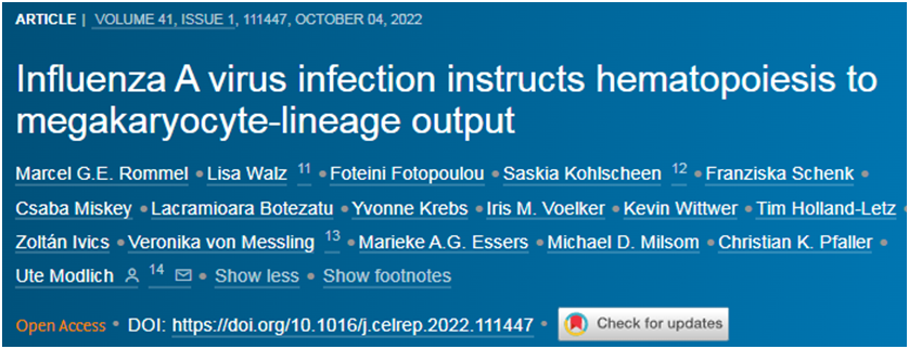 病毒引起的呼吸道感染可能危及生命。在一项新的研究中,来自德国保罗-埃利希研究所和海德堡大学的研究人员发现,仅限于肺部的流感病毒感染也会导致造血干细胞的激活和血小板的形成增加。血小板可导致血栓形成,这在COVID-19的严重病例中已得到证实。细胞因子IL-1和IL-6参与了造血干细胞激活的过程。相关研究结果发表在2022年10月4日的Cell Reports期刊上,论文标题为“Influenza A virus infection instructs hematopoiesis to megakaryocyte-lineage output”。
