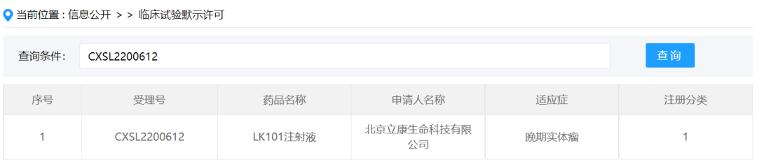 2023年3月15日,国家药品监督管理局药品审评中心(CDE)网站临床试验默示许可栏更新数据,北京立康生命科技有限公司(以下简称为“立康”)旗下的个性化肿瘤新生抗原疫苗产品——LK101 注射液获临床试验默示许可,适应症是晚期实体瘤。