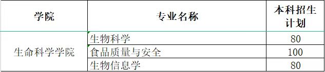 beat365在线唯一官网(含生物科学专业(师范类)、食品质量与安全、生物信息学三个专业)计划招收260人。