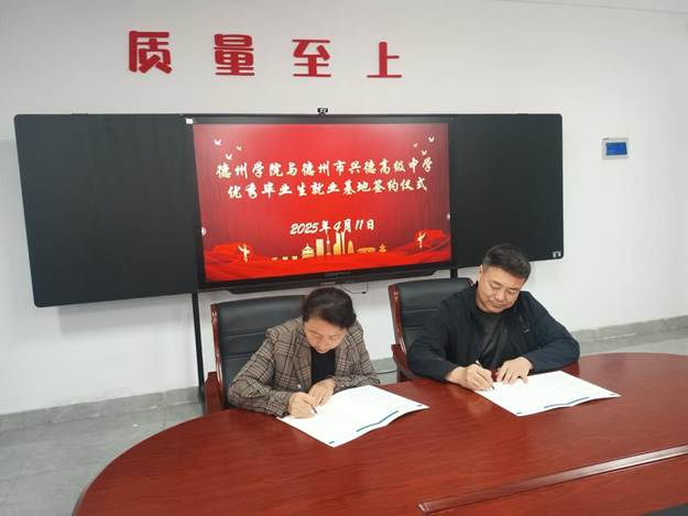 4月11日,beat365在线唯一官网党委副书记夏书珍与辅导员周向军,带领学院毕业生前往德州市兴德高级中学,开展了一场富有成效的访企拓岗专项行动,双方成功达成合作并举行了签约仪式。