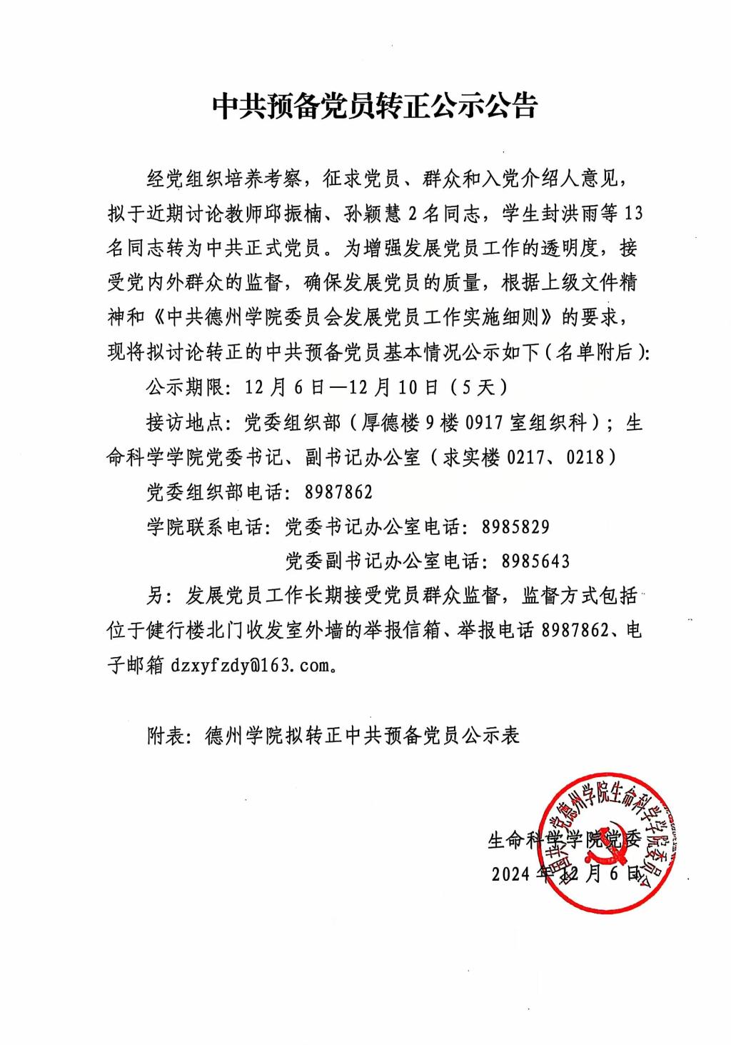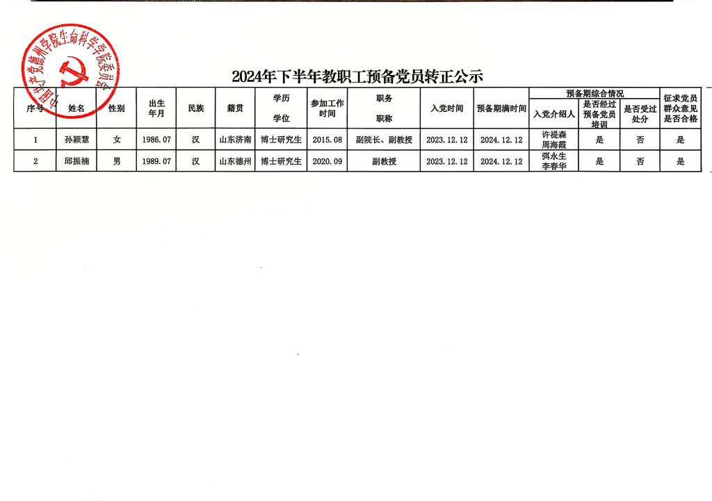 中共预备党员转正公示公告
