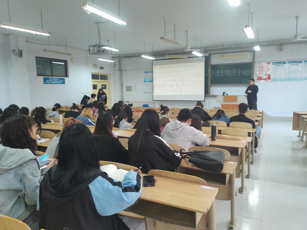 魏院长围绕马克思列宁主义的重要作用展开讲座,他强调马克思列宁主义是中国共产党的理论基础和行动指南,必须坚定不移地坚持马克思列宁主义的指导地位,让同学们对毛泽东思想的形成有了更深刻的认识。魏院长讲道,毛泽东思想是马克思主义中国化的第一大理论成果,是中国共产党集体智慧的结晶,其追求和倡导的远大理想、思想路线、奋斗宗旨、革命精神等依然是中国人民不断奋进的强大精神动力。随后魏院长以社会主义本质理论和社会主义改革开放论为切入点对中国特色社会主义理论体系的内容进行了系统的阐述,魏院长的讲解使同学们了解到“三个代表”重要思想是马克思主义中国化的新发展,科学发展观是指导党和国家全部工作的思想武器。接下来魏院长以习近平新时代中国特色社会主义思想形成的时代背景为主线,阐明了坚持习近平新时代中国特色社会主义思想是全党全人民实现中华民族伟大复兴的行动指南,是中国共产党必须长期坚持的重要指导思想。最后魏院长要求同学们增强入党的自觉意识,提高自身理论水平,端正入党动机,坚定理想信念。同学们纷纷表示将从点滴小事做起,在思想上积极进取、在工作中乐于奉献、在学习上精益求精,以实际行动向党组织靠拢。