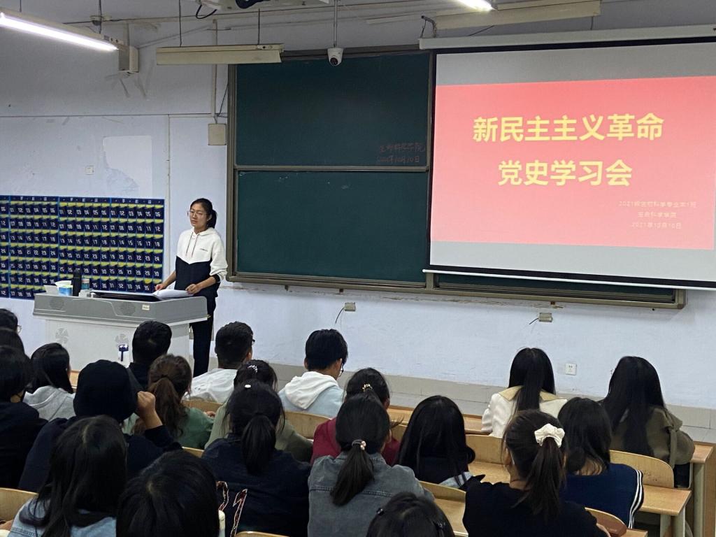 10月11日,为认真学习贯彻习近平总书记在党史学习教育动员大会上的重要讲话精神,进一步坚定理想信念,激发同学们的责任感和使命感,beat365官网团总支组织各团支部开展新民主主义革命党史学习会。