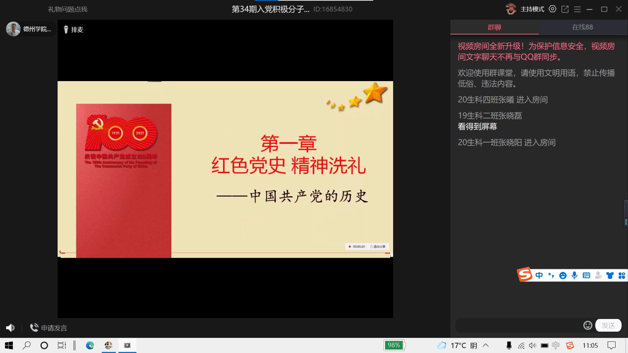 为进一步增强入党积极分子对党的基本理论知识的了解,提高他们的理论水平,beat365在线唯一官网于2022年4月16日在腾讯会议开展“红色党史,精神洗礼”入党积极分子线上培训课。此次课程由院长曾强成主持,beat365在线唯一官网入党积极分子参加了本次培训。