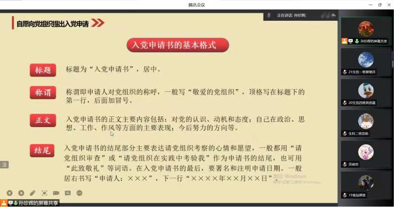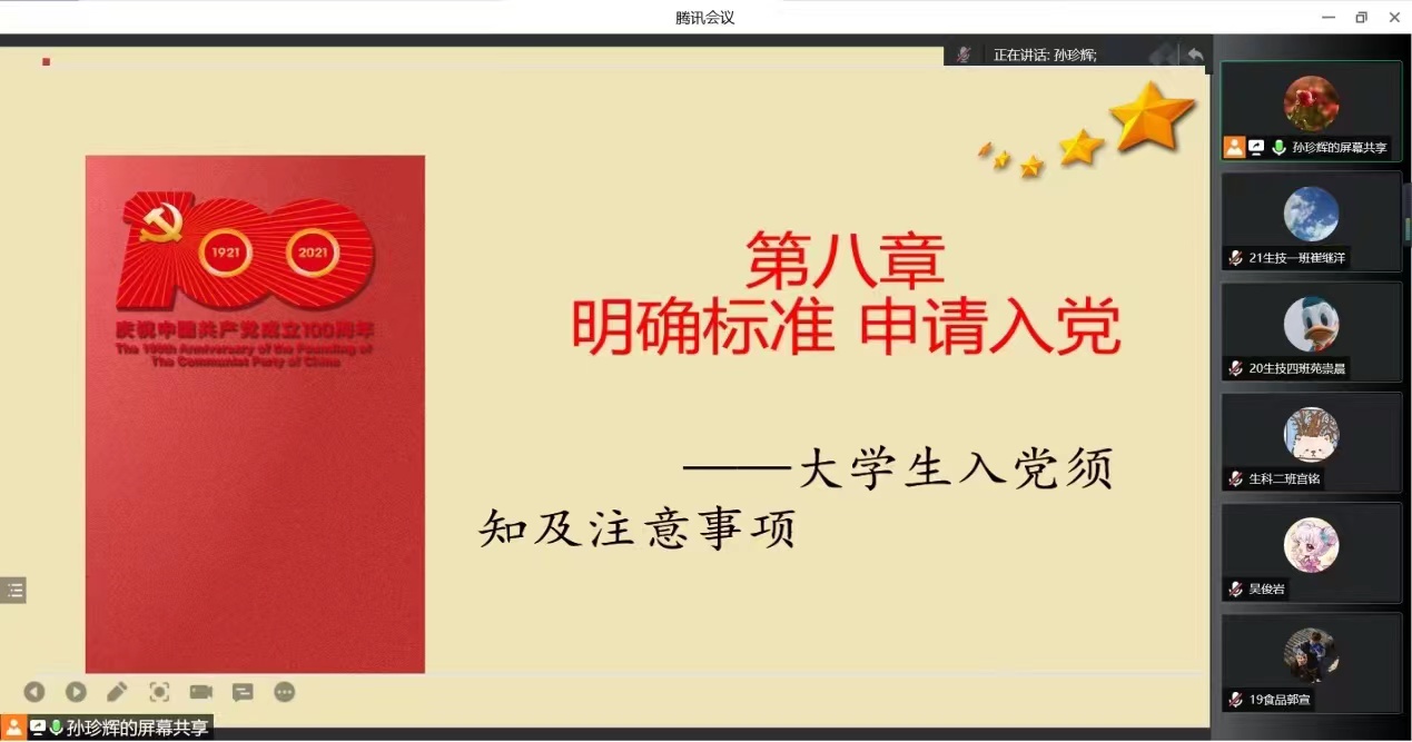 为提高入党积极分子们的党性修养,端正入党态度,明确入党动机。beat365官网于2022年4月23日通过腾讯会议开展“明确标准,申请入党”入党积极分子线上培训课。此次课程由孙珍辉老师主持,beat365在线唯一官网入党积极分子参加了此次培训。