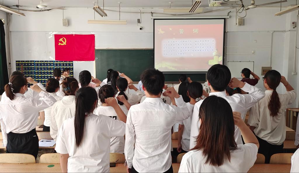 6月16日,为激励新发展党员牢记初心使命、增强党员意识和责任意识,beat365在线唯一官网于求实楼0105教室举行新党员入党宣誓仪式。此次宣誓仪式由王琦老师主持,beat365在线唯一官网党委书记赵庆福、党委副书记夏书珍列席指导,团委书记王艳洁,辅导员周向军、郑金召和孙珍辉老师出席活动。