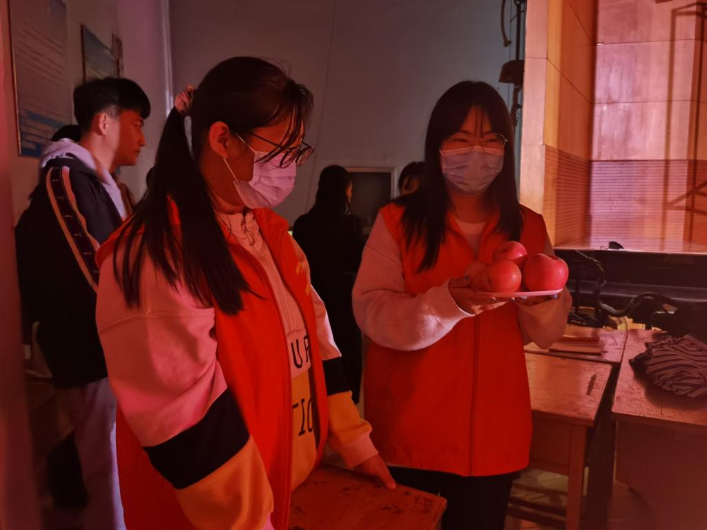 迎新晚会成功举办的背后离不开志愿者们的默默奉献。一大早志愿者们就来到了音乐厅布置场地。他们打扫场地、吹气球、粘贴装饰品,将舞台布置得井井有条。晚会正式开场,为了给同学们呈现最完美的晚会效果,志愿者们依然在舞台后方默默的付出着,他们搬送需要的道具,在后台场务抢台、喊台,只为保证节目能够流畅地进行。微凉的夜中志愿者们挥洒着汗水,他们认真奉献的身影也是舞台上靓丽的一道风景线。随着主持人的结束致辞,迎新晚会落下了帷幕,但是志愿者们的工作仍未结束,大家撤离场地后志愿者们认真地打扫场地垃圾、收拾节目道具,真正为迎新晚会画上了圆满的句号。