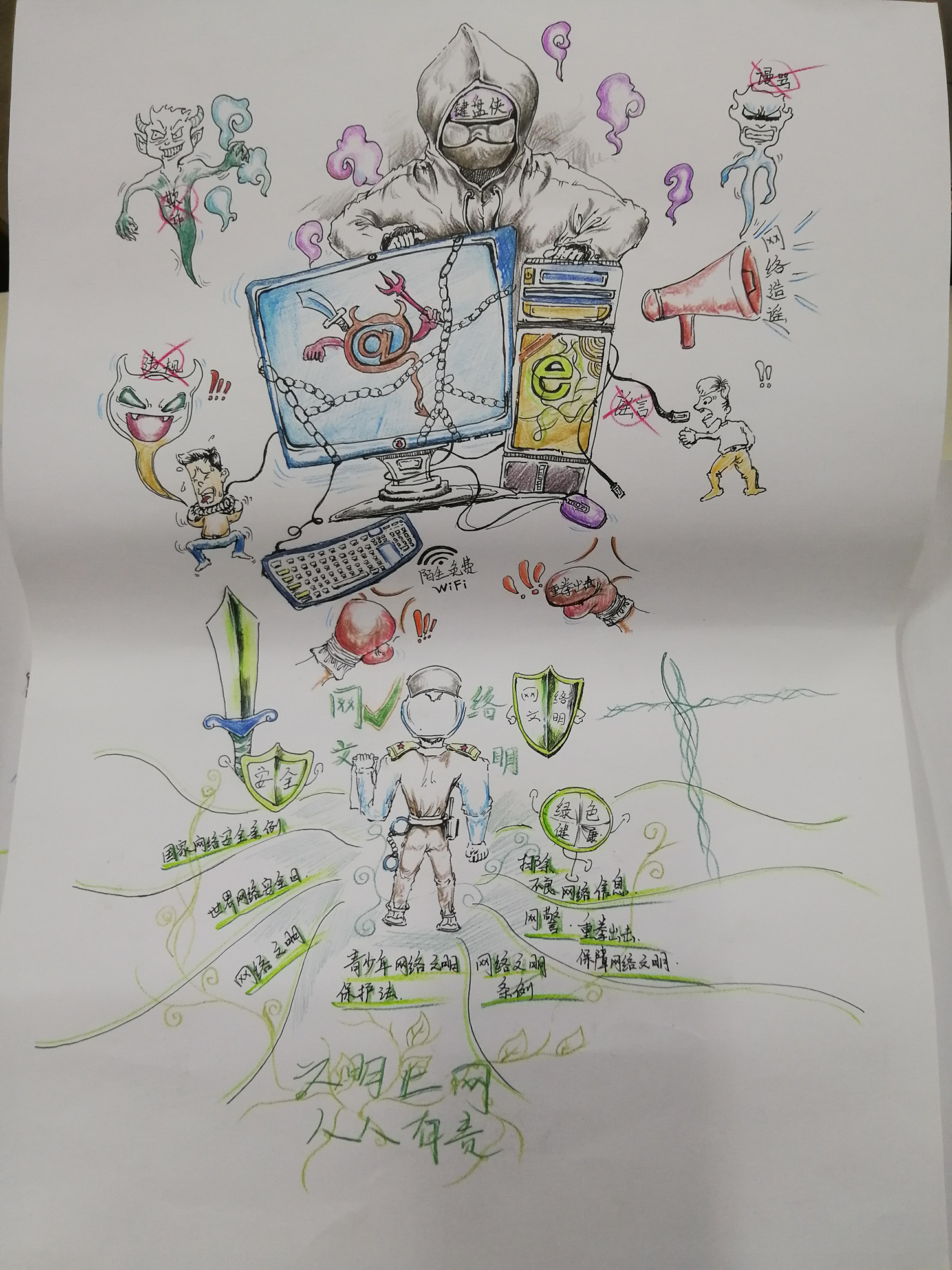 参加比赛的同学们精心准备,设计制作的漫画作品主题鲜明,风格诙谐幽默、积板向上。他们用自己手中的画笔将网络文明问题生动形象的表现出来,用漫画的方式提醒身边的人注意网络文明问题,拒绝谣言,警惕网络陷阱,要经得住网络上的诱惑,自觉抵制不良信息。同时带动了身边的同学共同弘扬网络正能量,营造积极健康的网络文化。