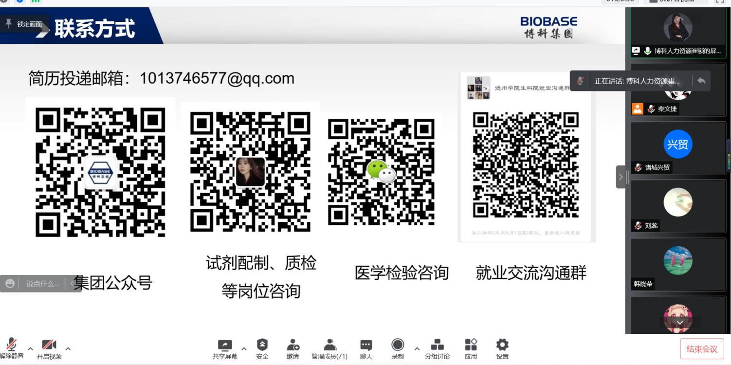 为贯彻落实全国普通高校毕业生的就业创业工作,做好新冠疫情防控下的高校毕业生校园招聘工作,给毕业生提供良好的就业服务,beat365在线唯一官网学子于2022年4月29日在线上参加山东博科诊断科技公司宣讲会活动。