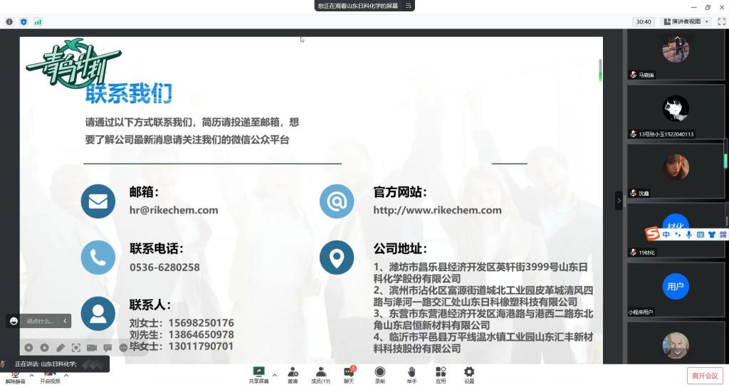 为更好拓宽毕业生就业渠道,生科院于4月14日下午14:30举办了山东日科化学有限公司线上宣讲。共有约20人参加此次线上宣讲。