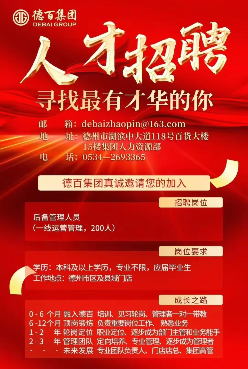 1.招聘岗位:后备管理人员